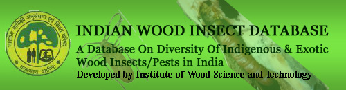 The insect database comprises of 2162 insect species including both indigenous and exotic, distributed among 84 families of 8 orders. The highest number of insects belong to the order Coleoptera. This database is an attempt to present the details of different insect species along with photographs of adults, other stages and also showing the damage they cause to wood/ timber structures. It is hoped that this database will be useful to all those involved in timber production and protection.